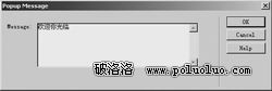 二、使用“Poppup Message”動作 當提交一些表單時,不外乎在點擊表單提交按鈕時彈出諸如“謝謝您使用!”等一些消息,如果使用“Open Browse Window”動作就有點大材小用了,而且還需要考慮到網頁文件越小越好,對於此類簡短信息,最好使用“Poppup Message”動作比較實惠點。
