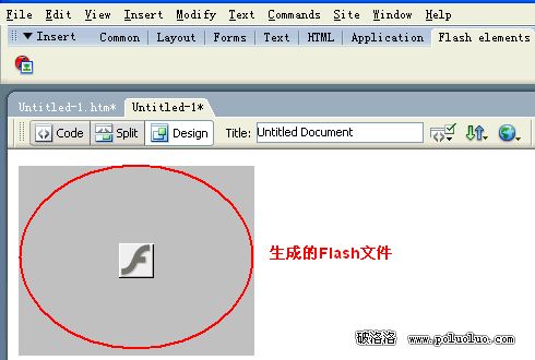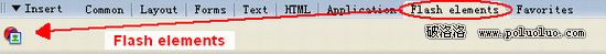1.首先在Dreamweaver的菜單欄下找到Flash Element這個功能圖標: