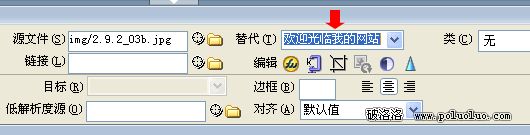 選中圖片,在屬性面板裡“替代”輸入框輸入“歡迎您…”。