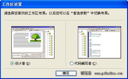 您可以從中選擇一種適合您的工作區布局。如果您不熟悉編寫代碼,請您選擇“設計者”。如果您以後想更改工作區,可以使用“編輯”菜單“首選參數”來實現切換如下圖: