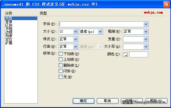 創建CSS樣式表的過程,就是對各種CSS屬性的設置過程,所以了解和掌握屬性設置非常重要。在DW MX 2004的CSS樣式裡包含了W3C規范定義的所有CSS1的屬性,把這些屬性分為:類型、背景、區塊、方框、邊框、列表、定位、擴展等八個部分,如下圖: