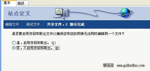 好了現在出現了下一個界面、我們先講解“基本定義站點模式”選擇基本之後你會看到“你打算為您的站點起什麼名字?”在裡面輸入你網站的名字。在點底下的按鈕“下一個”。