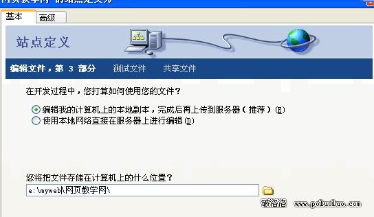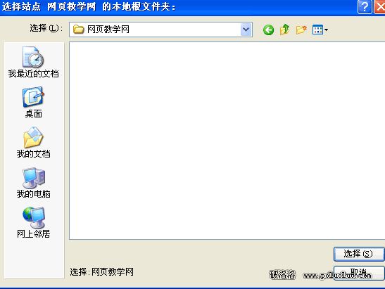 找到你網站文件存儲的位置,我的網站是放在了E:\myweb\網頁教學網\裡面,這個要看你的網站的要放在哪個位置了,所以就不在詳細的講解這個問題了 。好了已經設置好了,點底下的“選擇”