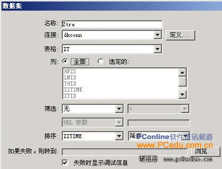 (3)新建一個空白ASP.NET VB動態頁,並保存為dkgo.aspx。添加數據集Ztre,其設置如圖11-2所示。