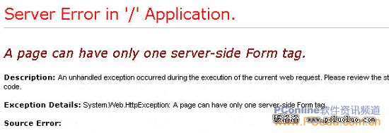 圖10-1 頁面只能有一個含有runat="server"表單的錯誤