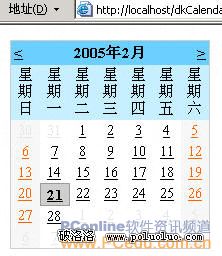圖10-4 dkCalendar.aspx在IE中的浏覽