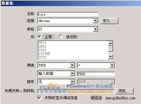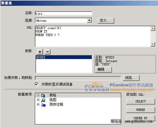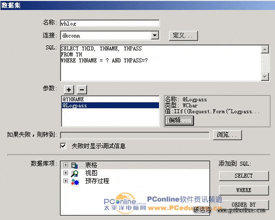 ⑤單擊“確定”保存設置,一直回到數據集yhlog對話框。修改SQL語句,修改結果如圖7-6所示。