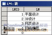 ①啟動Access2003,打開dkblog.mdb數據庫,在LM表的LM字段中按順序輸入平面設計、3D設計、網頁設計、網絡編程等4個記錄,如圖4-1-3 所示。