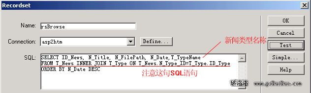 單擊OK,好了,新聞類型的記錄集已經放在List裡了。現在保存add.asp,ok!