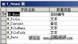 2、數據庫准備。建立個數據庫(這裡我們采用Access2000)文件:asp2htm.mdb,建2個表:T_News,T_Example,具體如圖: