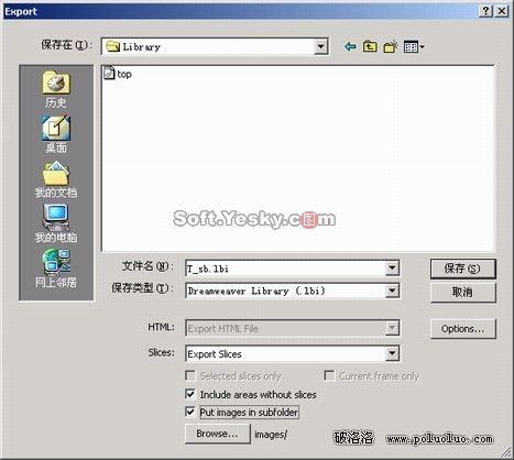 如果要將Fireworks文件導出到Dreamweaver庫,可選擇“File”菜單下的“Export”選項,從保存類型下拉列表中選擇“Dreamweaver Library”,會彈出出現一個如圖15所示的對話框,提示建立一個Library文件夾。