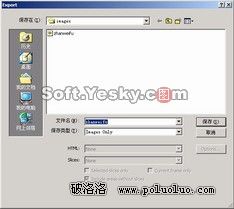 第五步:在“Export”對話框中命名導出的圖像文件,這些文件是將在Dreamweaver中顯示的jpeg或gif文件。然後為導出的圖像文件指定位置,所選的位置應在Dreamweaver的站點文件夾內。如果已經輸入了圖像占位符的名稱,則該名稱在 Fireworks中將用作默認文件名,如圖5所示。
