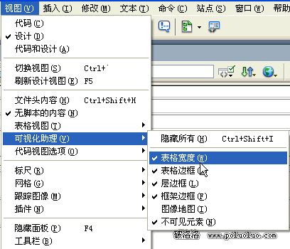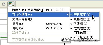 方法二點擊工具欄上的視圖(view option)圖標,從下拉菜單中選擇“可視化助理”,把“表格寬度”前面的鉤去掉。