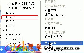 4.在彈出的菜單中點擊“顯示事件”,選擇“4.0 和更高版本浏覽器”。
