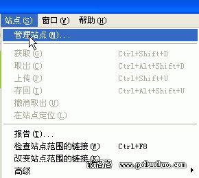 5、以上步驟完成了建站,設虛擬目錄,下面就是把Dreamweaver MX 2004打開了。第一步就是“管理站點”了