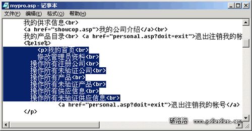如下:這是一份我自己寫的ASP源文件,現用記事本打開