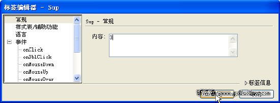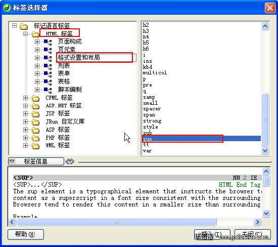3.在“標簽選擇器”中選擇sup標簽,單擊“插入”按鈕。