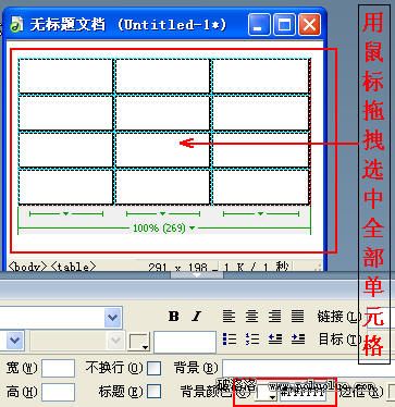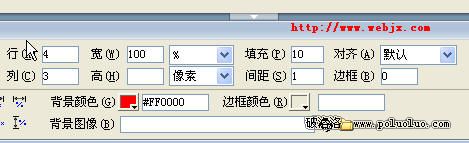 Step 3 選中此表格的所有單元格,在“屬性”面板中設置所有單元格的屬性如下:背景顏色(Bg)為白色或紅色以外的其他顏色。
