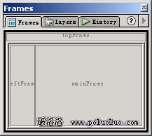 2、打開Main.htm頁面。將Object面板切換到Frames面板,如圖三所示;