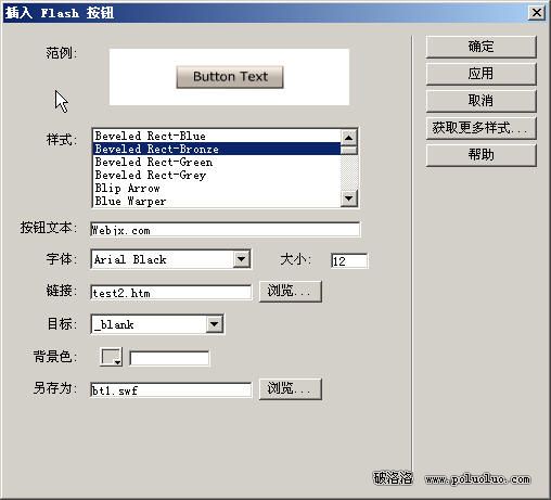 ( 3 )保存文件,完成操作。簡單的 Flash 按鈕也可通過 Dreamweaver 來快速制作,這就不必大動干戈來用 Flash 來制作了。