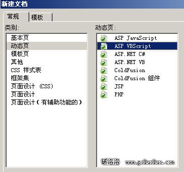 數據庫建好後開始做公共網頁,用來打開數據庫,打開Dreamweaver MX 2004,按如下方法新建動態ASP網頁:
