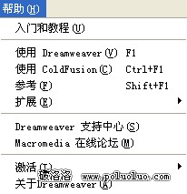 “幫助”菜單 提供對 Dreamweaver 文檔的訪問,包括關於使用 Dreamweaver 以及創建 Dreamweaver 擴展功能的幫助系統,還包括各種語言的參考材料。