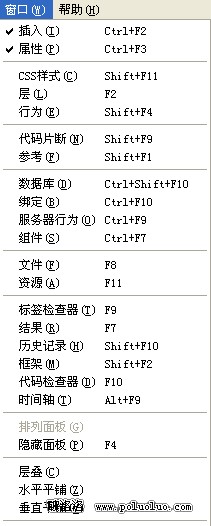 “窗口”菜單 提供對 DW中的所有面板、檢查器和窗口的訪問。