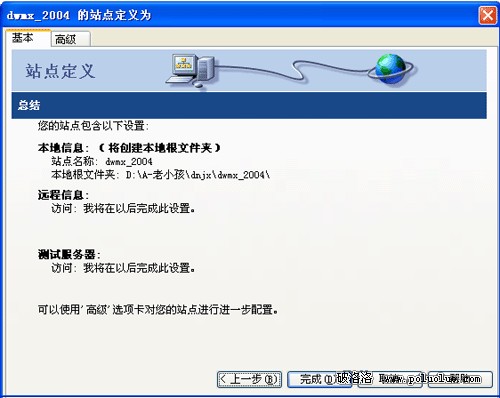 選擇標有“編輯我的計算機上的本地副本,完成後再上傳到服務器(推薦)”的選項。 在站點開發過程中有多種處理文件的方式,初學網頁制作的朋友請選擇此選項。