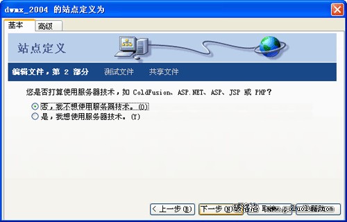 單擊“下一步”。出現向導的下一個界面,詢問您是否要使用服務器技術。