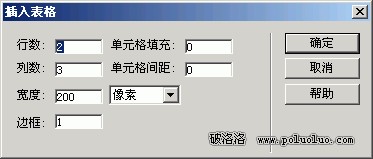 1. 單擊插入面板上的“插入表格”圖標,設置插入表格參數如下圖。