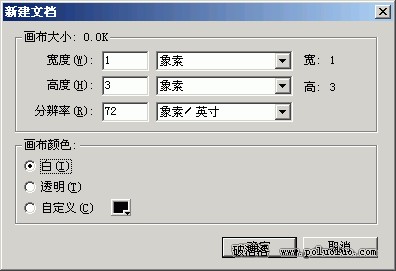 1.選擇“文件”/“新建”,在“新建文檔”對話框中,設置寬1象素,高3象素。
