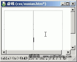 如果直接把虛線圖像作為單元格的背景圖像,會出現虛線很寬的情況。這是由單元格中的空格字符引起的,要想刪除可不是那麼容易的事,在代碼視圖,刪除後,dreamweaver還是會產生。這時插入1×1象素透明圖像,自然就會刪除。