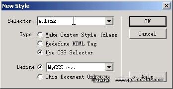 2、 在Type選項中選擇Use CSS Selector,創建默認鏈接樣式,如圖;