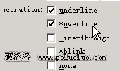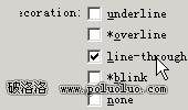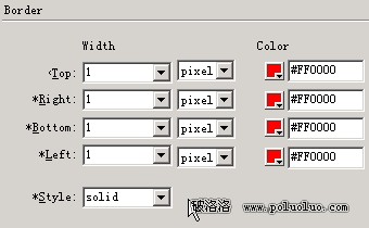 在Border選項中包括Width(劃線寬度)、Color(劃線色彩)、Style(劃線種類)三部分,而每部分又是可以針對不同的邊框設定不同的參數,這是普通鏈接劃線不可能實現的效果。