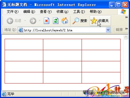 最後,保存網頁,按F12預覽。怎麼樣,一個4行3列的紅色細線表格是不是呈現在你面前?