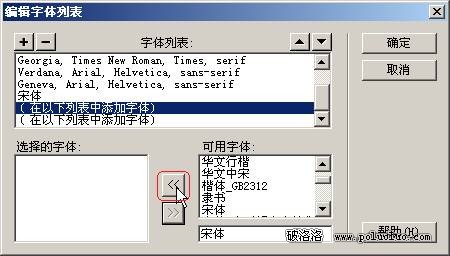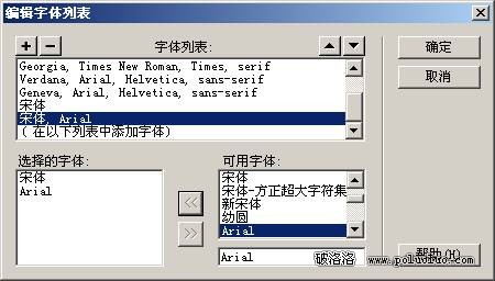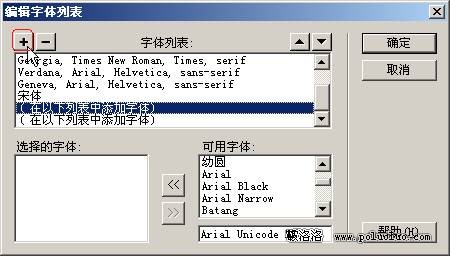 4.繼續添加字體,選擇一種字體,如Arial,按箭頭按鈕添加。
