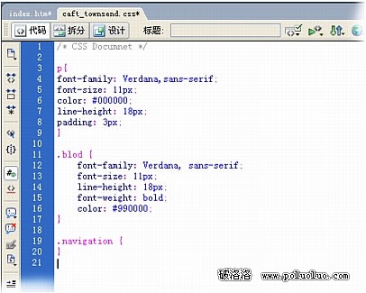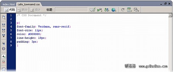 單擊 cafe_townsend.css 文件以顯示該文件。您將看到,Dreamweaver 已經將您指定的所有屬性添加到該文件中。