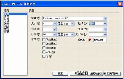 在"CSS 規則定義"對話框中,執行下面的操作: