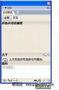 在"CSS 樣式"面板("窗口">"CSS 樣式")中,單擊位於面板右下角的"附加樣式表"按鈕。