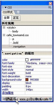 現在,您將使用"CSS 樣式"面板向 .navigation 規則添加更多屬性。