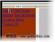 在"文檔"窗口中,Cuisine 文本的外觀完全發生了變化。根據您在上一節中為 .navigation 規則所定義的屬性,該文本的格式現在已被設置為導航條按鈕。