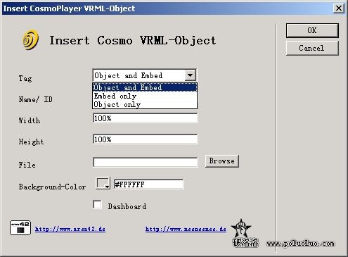 在Tag標簽中有三種選項:object(物體) and Embed(嵌入)、Embed only和Object only.默認設置為Object and Embed.