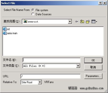 File(文件)選項中,可以直接填寫鏈接的URL資源,也可以點擊Browse浏覽按鈕,在彈出的對話框中進行選擇確定,關鍵要注意一個浏覽時的路徑問題就行了。