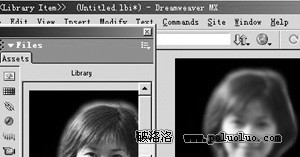 與模板類似,DW MX的庫就顯得更加靈活,在“Assert”選項卡上單擊“Library”,打開庫,暫時庫中沒有任何元素,我們把網頁中要生成庫的元素,如表格、圖像,直接拖到庫面板中即可(如下圖)。
