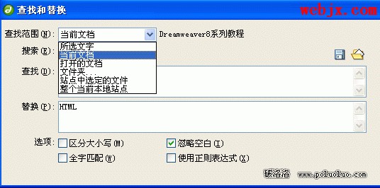 DIV+CSS佈局教程網 >> 網頁製作工具 >> Dreamweaver教程 >> Dreamweaver相關 >> 入門:充分利用Dreamweaver8中的查找替換技巧