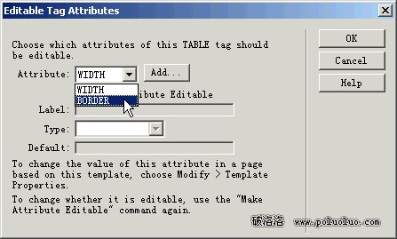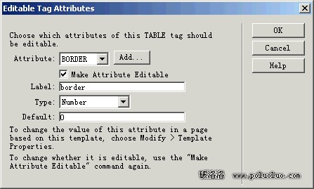 Dreamweaver MX有一項新功能——可編輯標記屬性,它讓我們可以解除模板中某個標記屬性的鎖定,以便模板用戶在使用模板創建網頁時能夠編輯該屬性。例如解除模板中插入的表格的border(邊框)屬性,讓用戶在使用模板創建網頁時可以靈活地設置表格邊框的有無或寬度。