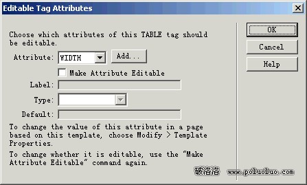 (2)選擇Modify>Templates>Make Attribute Editable(修改>模板>使標記可編輯),彈出的Editable Tag Attributes(可編輯標記屬性)對話框中。