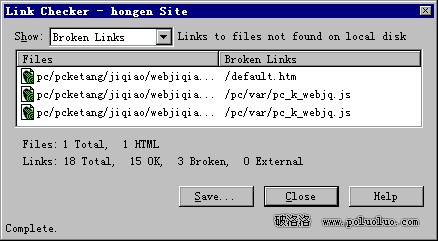 點擊“File”菜單下“Check Links”項(快捷鍵為Shift+F8),Dreamwaver便開始檢查當前Site下的所有連接,如果發現了鏈接的錯誤則會在彈出的“Link Checker”對話框中列出鏈接錯誤所在的頁面,接下來我們要做的只是記下出錯頁面,然後打開頁面修改錯誤,既快又方便。