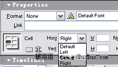 在表格中任意位置單擊鼠標,在下面的Properties面板中設置Align為Right。