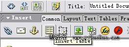 打開Dreamweaver MX,新建一個頁面並以你喜歡的名字保存,點擊工具欄上的Insert Table圖標按鈕插入表格: